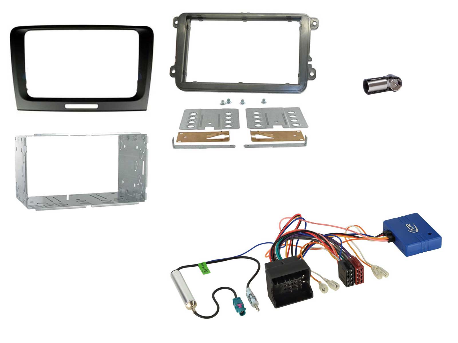 Doppel DIN Radioblende (schwarz) bestehend aus Einbaurahmen für VW Autoradio in Skoda Superb, Einbaurahmen für Doppel DIN Autoradio in Seat, Skoda, VW, Installations Kit für Doppel-DIN-Radioblenden