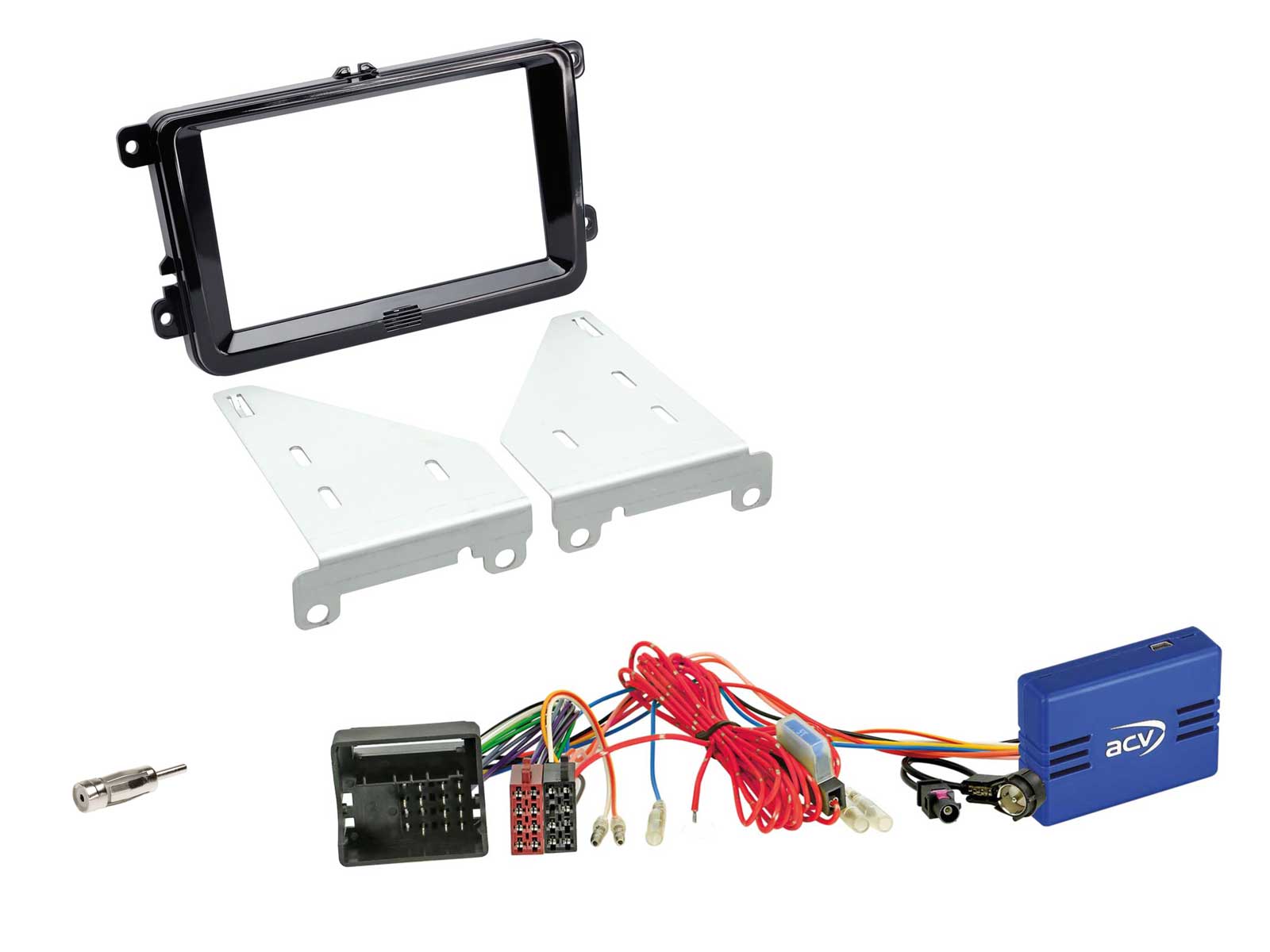 Radioeinbauset mit CAN-Bus für Doppel DIN Autoradio in VW T6 (2015-2019) - piano schwarz