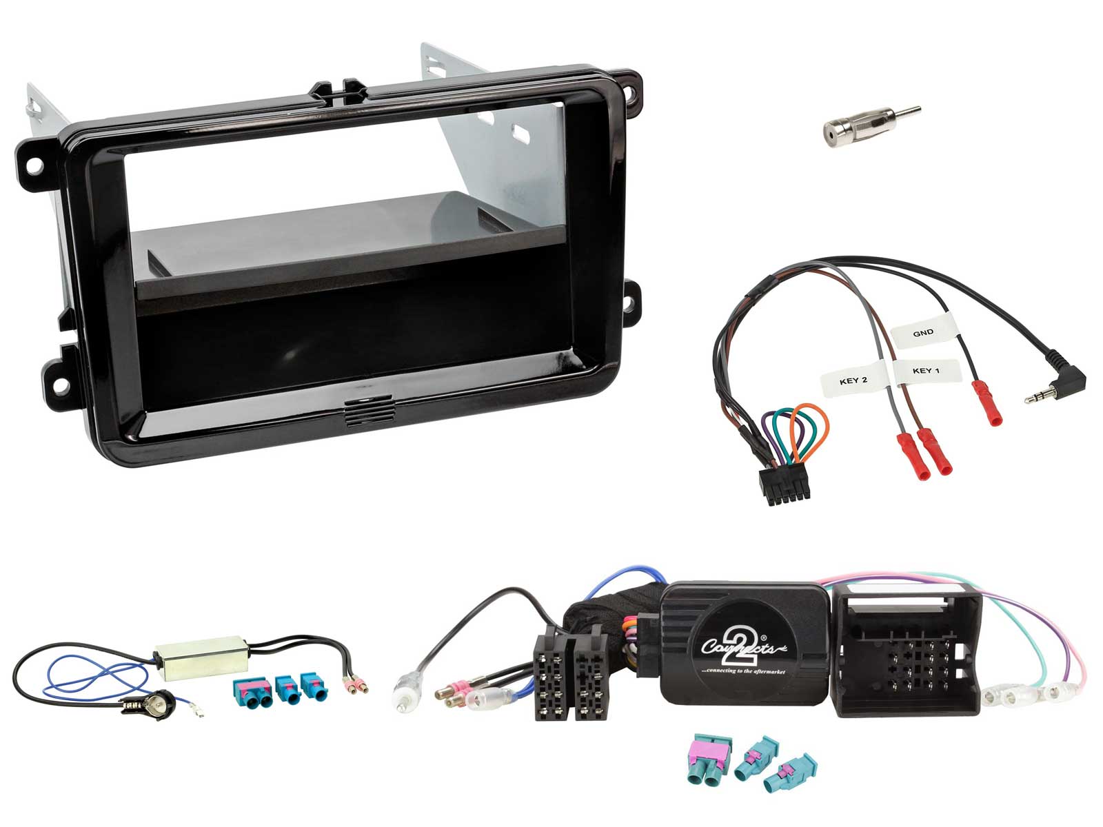 Einbauset mit Lenkradadapter für DIN Autoradio in VW - piano, Diversity