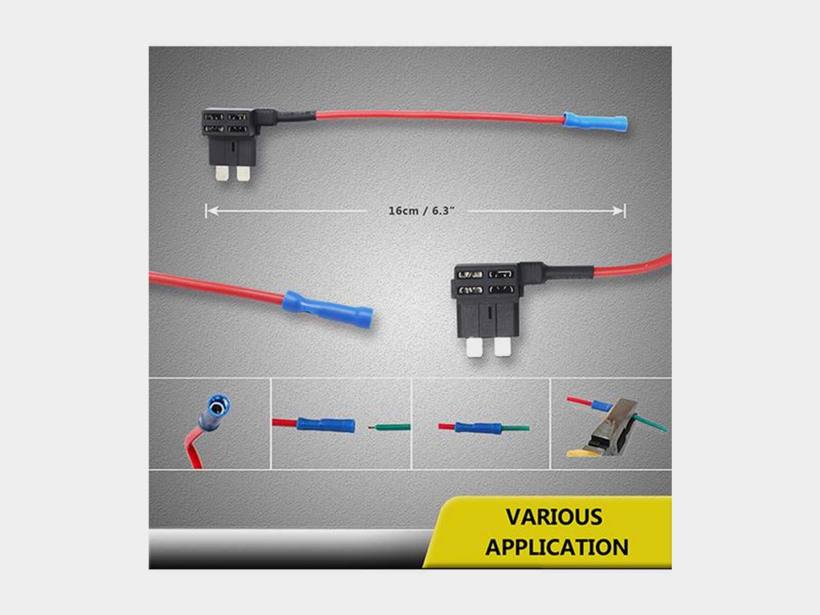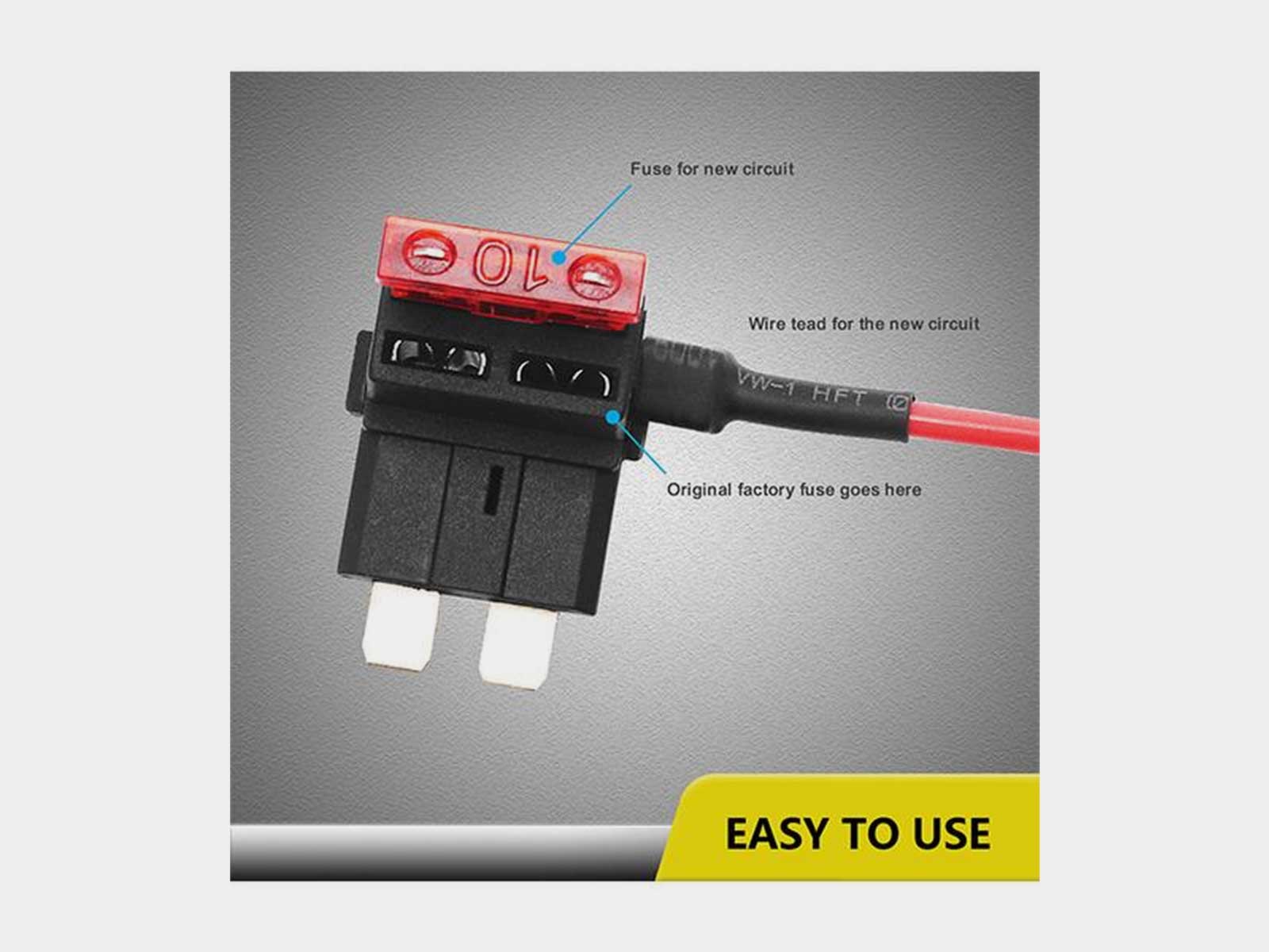 Schützt sowohl den bestehenden als auch den neuen Stromkreis für den einfachen Anschluss von 12V-Geräten wie Radios, LED-Lichtleisten, Dashcams, Navigationsgeräte, Rückfahrkameras oder anderen elektrischen oder elektronischen Verbrauchern die eine direkte Verdrahtung mit dem Sicherungskasten erfordern.