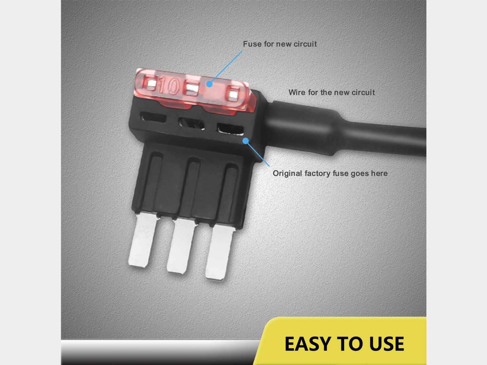Schützt sowohl den bestehenden als auch den neuen Stromkreis für den einfachen Anschluss von 12V-Geräten wie Radios, LED-Lichtleisten, Dashcams, Navigationsgeräte, Rückfahrkameras oder anderen elektrischen oder elektronischen Verbrauchern die eine direkte Verdrahtung mit dem Sicherungskasten erfordern.