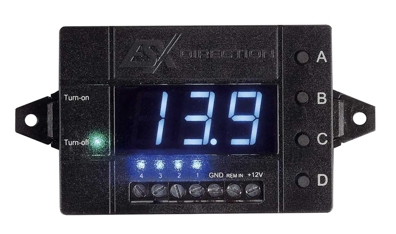 Damit Verstärker, die über das Remote-Signal gesteuert werden, nicht alle gleichzeitig starten, muss das Signal für jeden Verstärker zeitlich versetzt erfolgen. Vereinfacht gesagt: Sobald der erste Verstärker eingeschaltet ist, soll der zweite mit einer kurzen Verzögerung folgen, dann der dritte und schließlich der vierte. Genau das ermöglicht der neue DRDS14. Der Schalter besitzt einen Remote-Eingang, der typischerweise vom Autoradio oder einem DSP stammt, sowie vier nebeneinander angeordnete Remote-Ausgänge. Über seitliche Tasten kann für jeden Ausgang individuell eine zeitliche Verzögerung eingestellt werden. Beispielsweise kann der erste Ausgang zwei Sekunden nach dem Einschalten des Radios aktiv werden, der zweite fünf Sekunden nach dem ersten Ausgang und so weiter - bis hin zum vierten Verstärker. Die Ausgänge können sogar unabhängig von der Einschaltverzögerung in umgekehrter Reihenfolge programmiert werden, sodass die Verstärker zeitversetzt und nacheinander abgeschaltet werden.