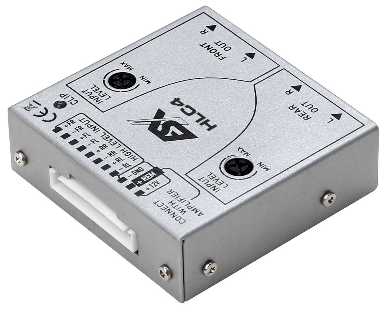 4-Kanal Hochpegel/Niedrigpegel-Signalwandler (Front & Rear), einfache Installation per Plug & Play, Aufbau in modernster SMD-Technologie für maximale Zuverlässigkeit, generiert ein Einschaltsignal (Remote) für Verstärker, Pegelregler für Front & Rear mit Clipping LED, Schutzschaltung gegen Spannungsrückführungen, keine Störsignale und Einschaltgeräusche hörbar dank der "Full Balanced" Eingangsschaltung mit optimierten Signalwegen, sehr niedriger Ruhestrom, inkl. Samtbeutel als Einbauschutz hinter dem Radio. Die Hochpegel-Eingänge sind mit dem "Error Protection System" (EPS) ausgestattet, damit bei Anschluss an OEM-Werksradios keine Funktionen beeinträchtigt werden oder Fehlermeldungen in den Fahrzeugspeicher geschrieben werden.